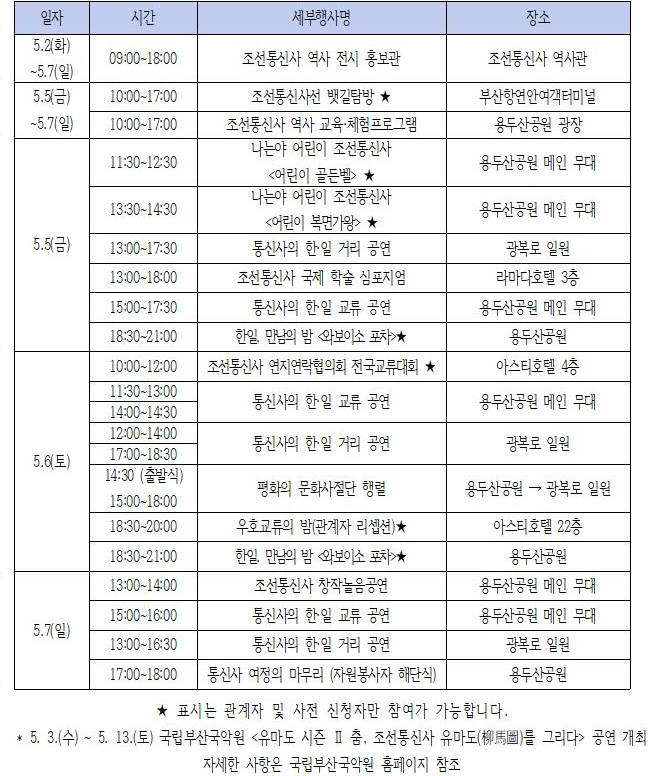 장소 : 용두산공원, 광복동 일대, 조선통신사 역사관, 부산항 연안여객터미널 등